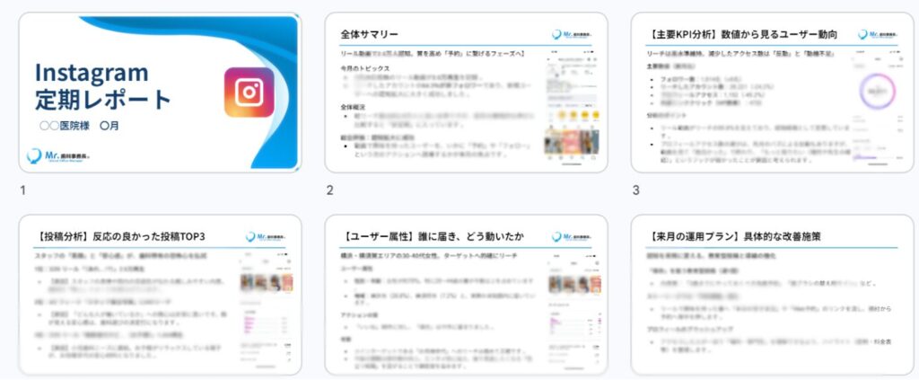 オンライン支援でのインスタグラム運用代行の場合、院長やスタッフから画像データの共有を行う必要があります。本サービスでは、毎月の訪問時に写真撮影や素材の受け渡しをその場で行うこともできるため、準備や細かなやり取りの負担を減らします。